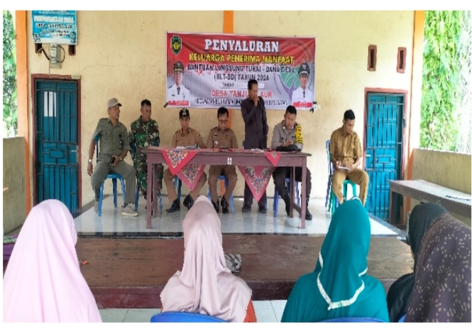 Saat menyampaikan sambutannya, Kepala Desa Tanjung Aur menyampaikan “sesuai dengan aturan yang terbaru bahwasanya penerima BLT DD ini harus warga yang miskin ekstrim, maka warga yang berhak menerima bantuan tersebut ada sebanyak 5 Kelompok Penerima Manfaat (KPM). Dengan adanya penyaluran BLT DD sebanyak tiga bulan dari bulan Januari hingga bulan Maret sekaligus dengan jumlah Rp.900.000 ini, saya harap kepada masyarakat untuk bisa memanfaatkan bantuan tersebut sebaik mungkin dan tentunya bermanfaat untuk kebutuhan”,paparnya.