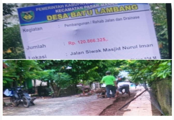 Untuk pengerjaan pembangunan diberikan kepada warga sekitar Batu Lambang, dengan tujuan membantu pertumbuhan ekonomi dan meningkatkan kesehjateraan warga dari hasil yang didapat selama proses pengerjaan berlangsung sampai pengerjaan selesai, tutup kades Epan Syahputra, SE..(Adv/Rd)