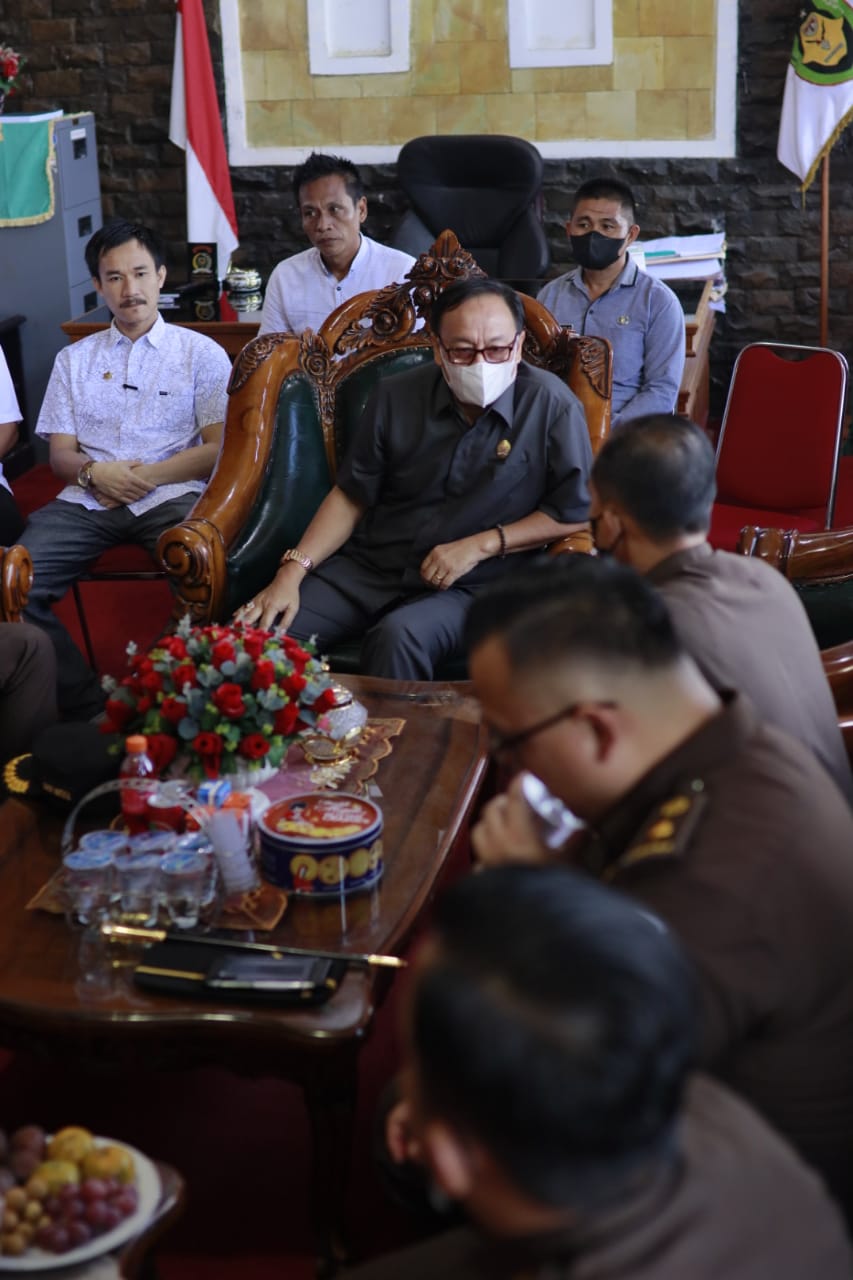 Ketua DPRD yang didampingi Plt Sekwan, Nico Dwipayana, S.STP, M.M, M.H dan Kabag Verifikasi Penganggaran, Ekwan Hermansyah, serta para Kasubag menerima kunjungan rombongan Kajari di ruangan kerja Ketua DPRD.