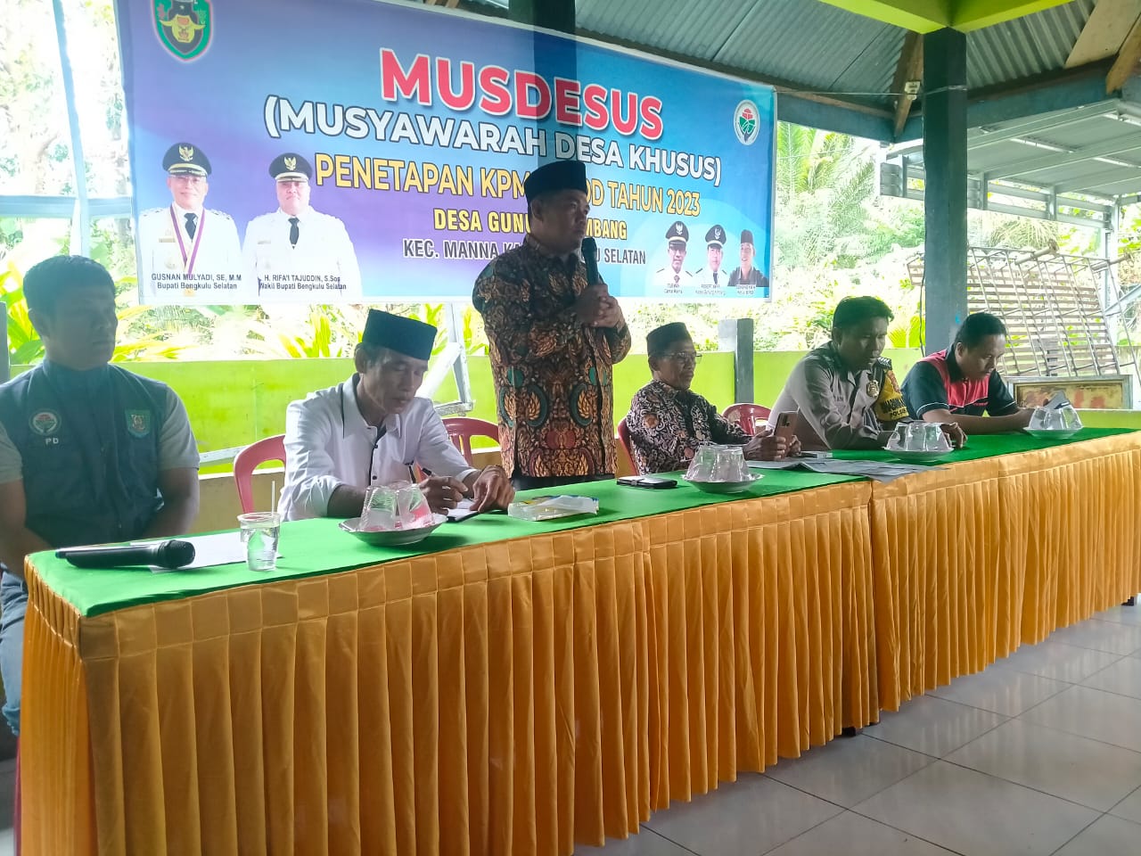 Bengkulu Selatan-Setungguannews.com- Pemerintah Desa Gunung Kembang Kecamatan manna Kabupaten Bengkulu Selatan, bertempat di Balai Desa Gunung Kembang melaksanakan Musyawarah Khusus Desa dalamrangka validasi, finalisasi, dan penetapan  keluarga miskin penerima BLT-DD tahun 2023.