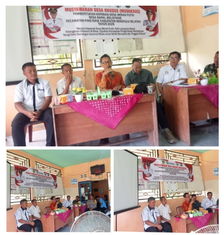 Musdessus dihadiri Kepala Desa Napal Melintang Darman Wirjo Camat Pino Raya, Babinsa, Bhabinkamtibmas, Kabid Koprasi, Ketua BPD dan anggota, perangkat desa, tokoh masyarakat, dan para calon pengurus Koperasi Merah Putih.