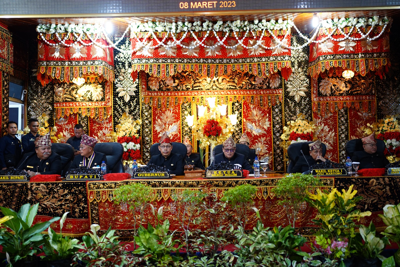 Rapat paripurna istimewa dipimpin Ketua DPRD, Barli Halim, S.E didampingi Wakil Ketua I, Juli Hartono, S.E, dan Wakil Ketua II, Dendi Man Tarmizi, S.E, S.H, dan diikuti Anggota DPRD dari semua unsur fraksi.