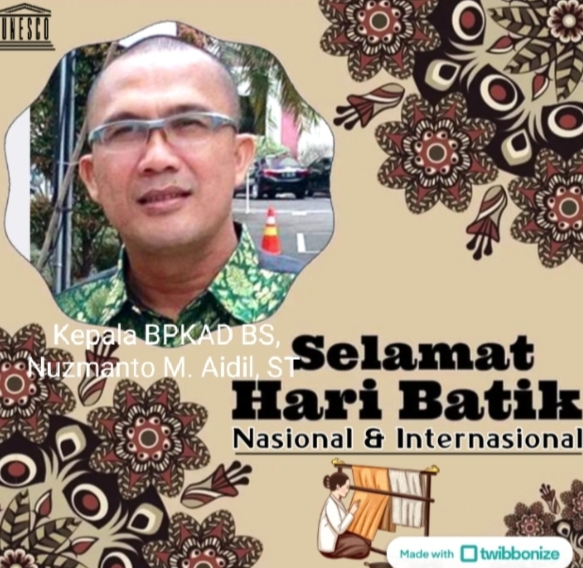 October 2, 2023December 21, 2023by official_sn Segenap Jajaran Dinas BPKAD Bengkulu Selatan Mengucapakan Selamat Hari BATIK Nasional Indonesia official_sn-Berita, Daerah-1351 Views Post Views: 1,351 Don't MissPemerintah Desa Gunung Sakti Gelar Pembagian BLT – DD Tahun Anggaran 2026Pemdes Tanggo Raso Ikut Meriahkan HUT Kecamatan Pino Raya Yang Ke-25Pemdes Nanjungan Ikut Meriahkan HUT Kecamatan Pino Raya Yang Ke-25Pemdes Tungkal ll Ikut Meriahkan HUT Kecamatan Pino Raya Yang Ke-25Pemerintah Desa Talang Tinggi Gelar Pembagian BLT – DD Tahun Anggaran 2026Pemerintah Desa Bandar Agung Gelar Pembagian BLT – DD Tahap Xl Tahun Anggaran 2025